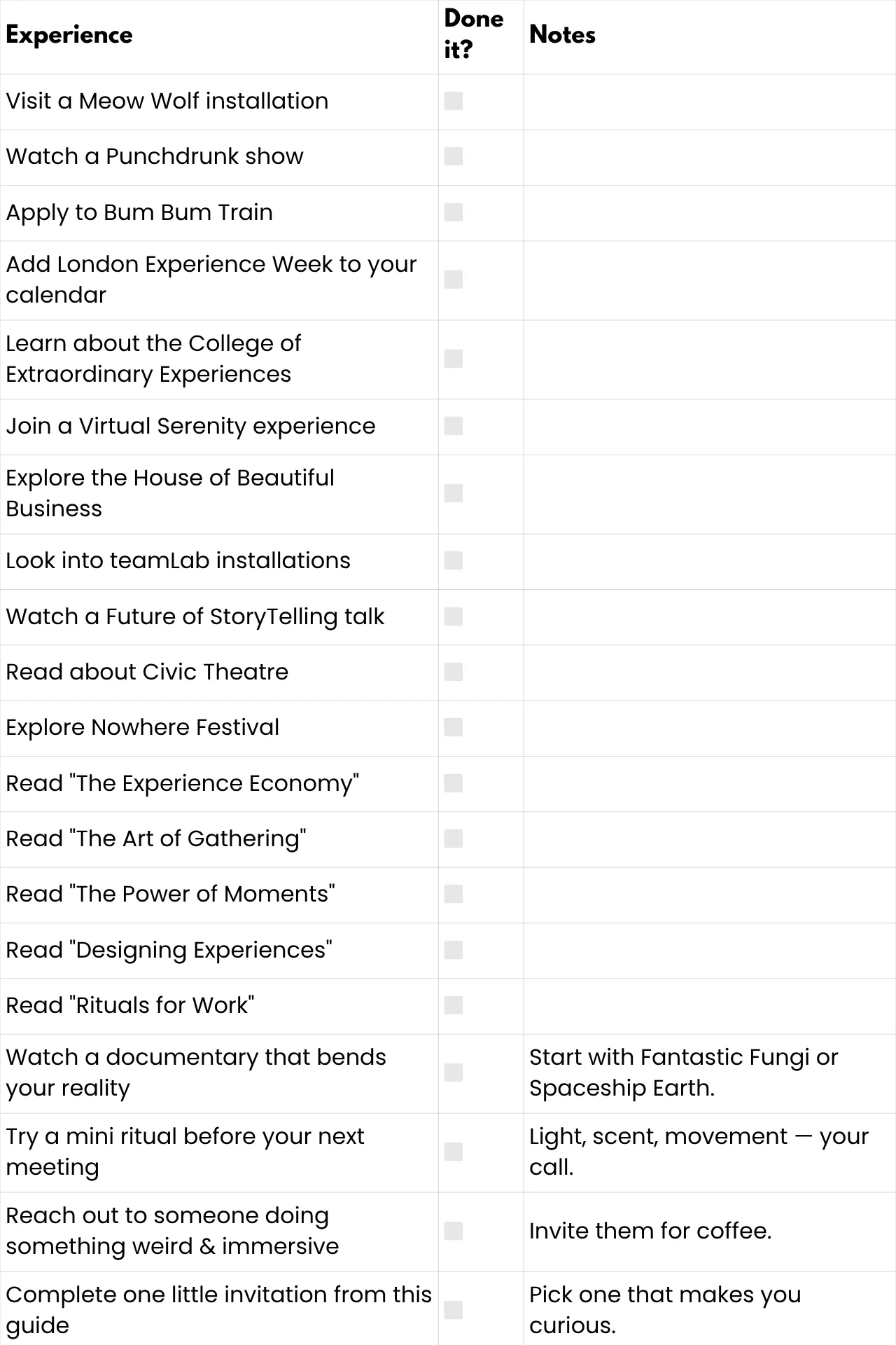 This guide isn’t definitive — it’s just the beginning. Experience design is a living thing. It’s built in basements and castles, deserts and boardrooms, museums and kitchens.