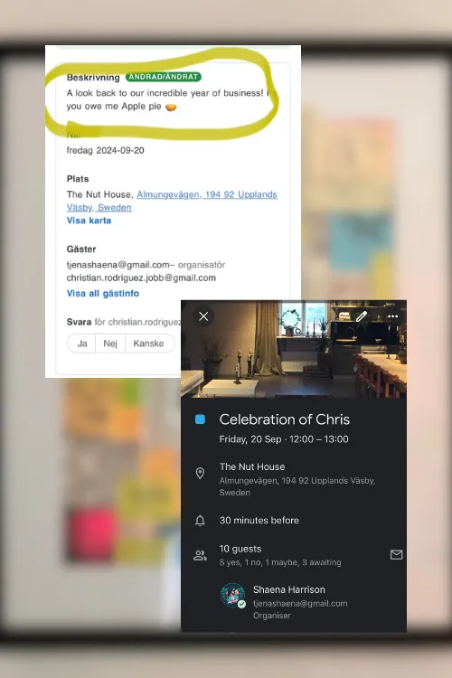 In September 2023, I called him and decided to have a spontaneous lunch at The Nut House in Upplands Väsby. I picked him up and teased him about how I, someone who didn’t grow up in his “hood,” knew more about his local spots than he did. It was one of those lunches that feels magical in its simplicity. We laughed, talked about life, and shared stories of our entrepreneurial journeys. Chris was also venturing into new territories, figuring out his path, and during that lunch, he led me through an exercise where we imagined ourselves a year into the future.